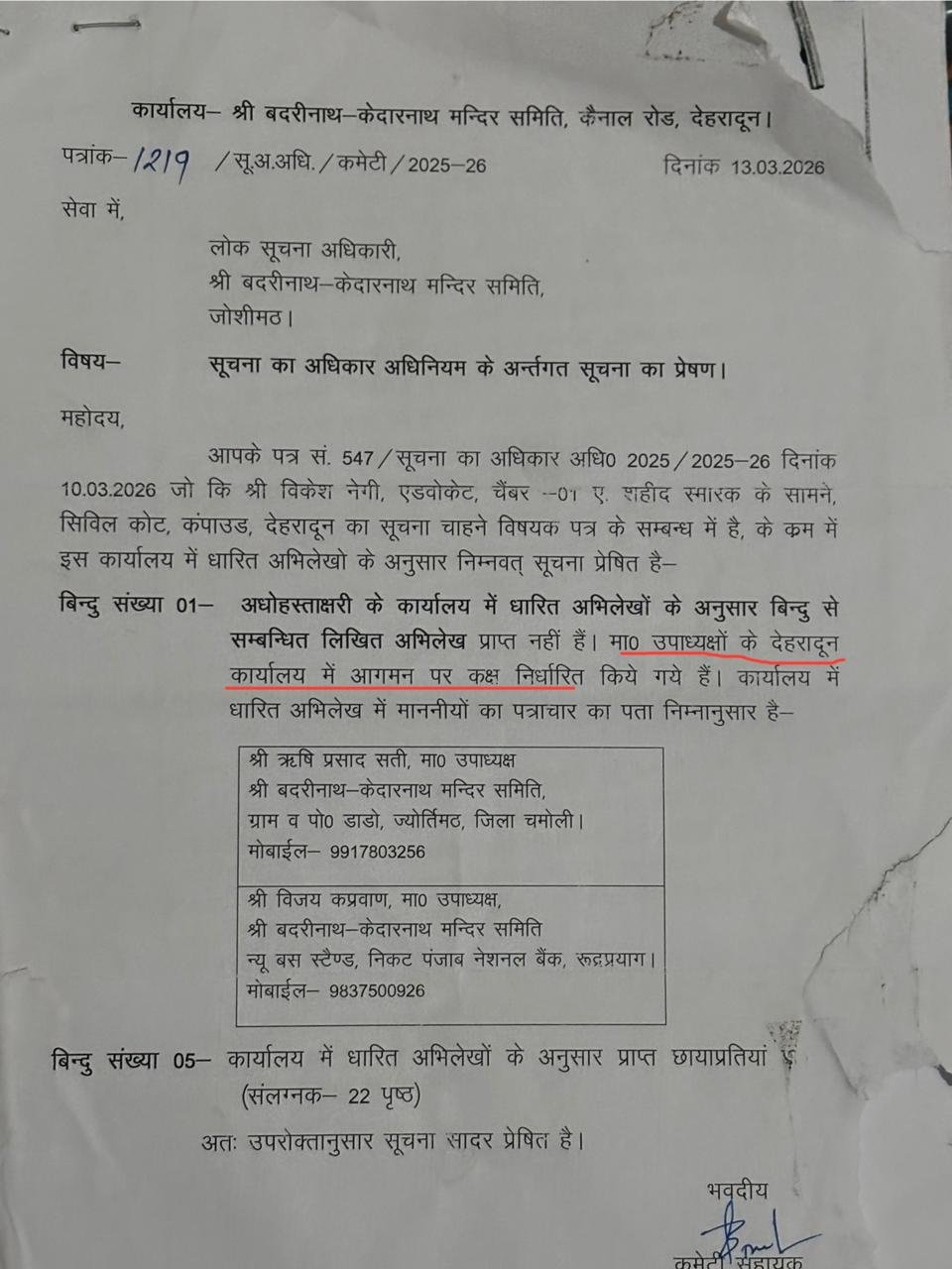 आरटीआई से प्राप्त बिलों के अनुसार, रुद्रप्रयाग स्थित उनके निजी कार्यालय के लिए फर्नीचर की खरीद भी मंदिर समिति के बजट (सज्जा मद) से की गई। दस्तावेजों के मुताबिक, जून 2025 में इसके लिए लगभग ₹43,700 का भुगतान किया गया। साथ ही, उनके द्वारा इस्तेमाल किए जा रहे दो वाहनों (बोलेरो और अन्य) के डीजल, बीमा और सर्विसिंग का लाखों का खर्च भी BKTC वहन कर रही है।